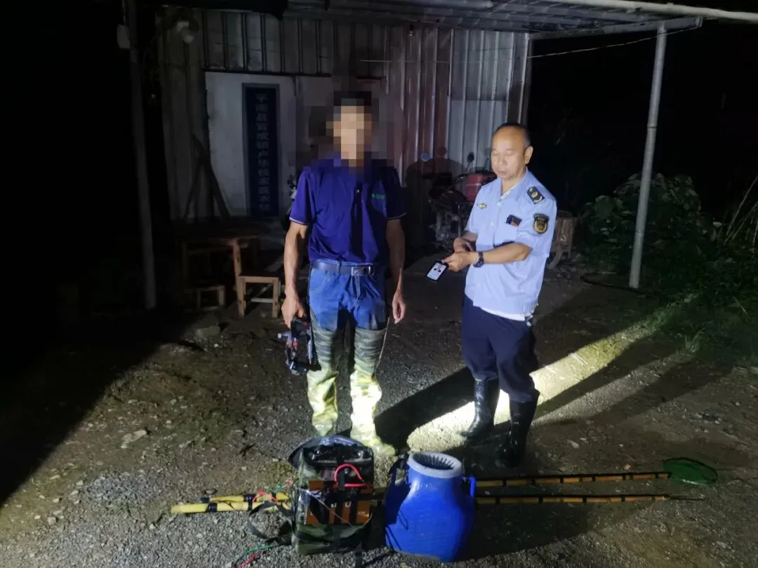 4月21日晚–22日凌晨,县农业综合行政执法大队到平南街道、官成镇巡查,共查获4起涉嫌非法电鱼案件,收缴渔具4套。