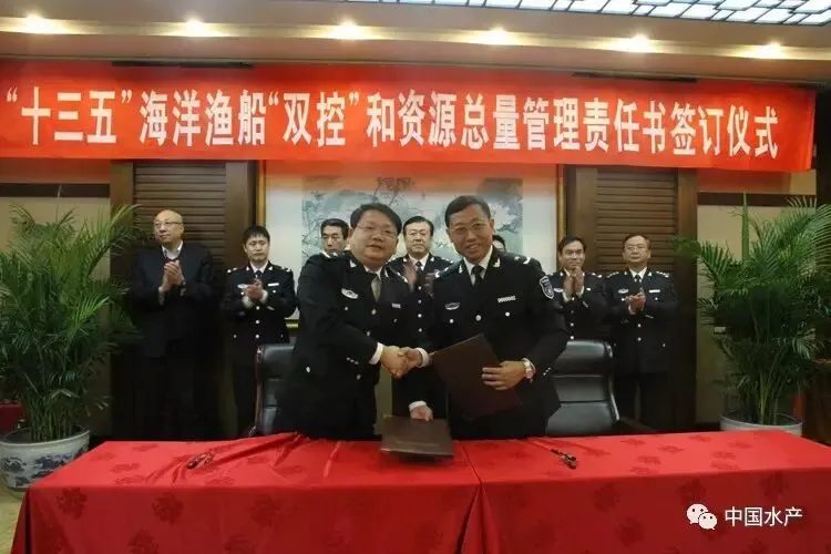 3月13日,“十三五”渔船管理“双控”和海洋渔业资源总量管理责任书签订仪式在农业部举行,由农业部分别与11个沿海省(区、市)签订责任书。农业部副部长于康震强调,这是贯彻落实国务院批准、农业部印发的《关于进一步加强国内渔船管控 实施海洋渔业资源总量管理的通知》(下称《通知》)精神,加强渔船和渔业资源管理的一项必要的措施,是海洋渔业资源管理向精细化、科学化迈进的一次重要探索。