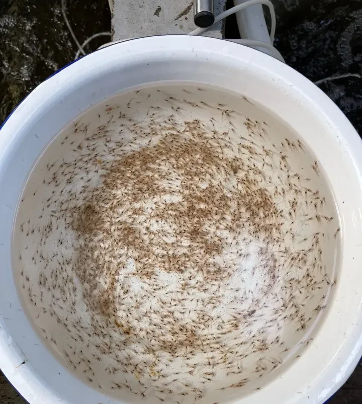 米粒大小的沼虾苗已经长到3-4厘米