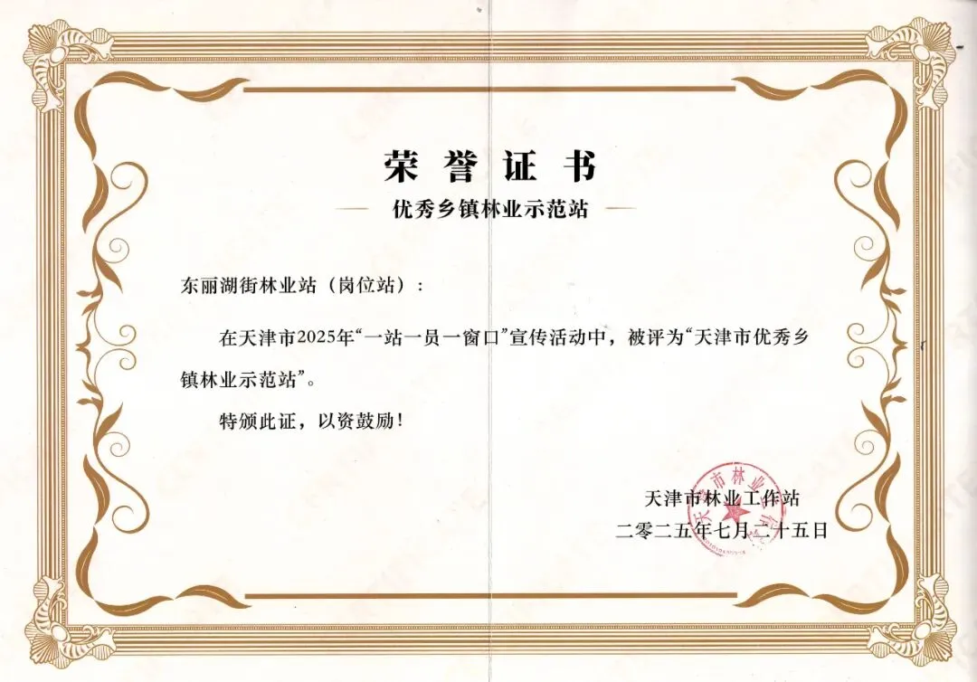 在天津市2025年“一站一员一窗口”宣传活动评选中,东丽湖街林业站凭借扎实的绿化管护工作与突出的生态建设成效,荣获“天津市优秀乡镇林业示范站”称号,成为基层林业工作的标杆典范。该站肩负着街域约778万平米绿化养护管理重任,包括34条道路、4个公园以及东湖、丽湖的林业绿地。