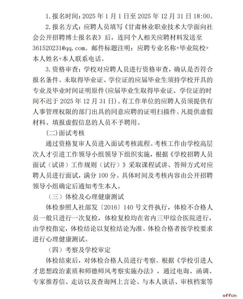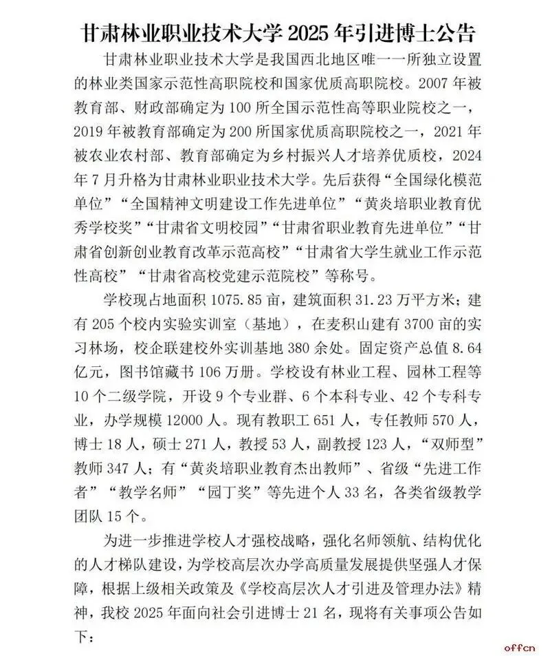 >事业编!2025年甘肃林业职业技术大学引进21人公告