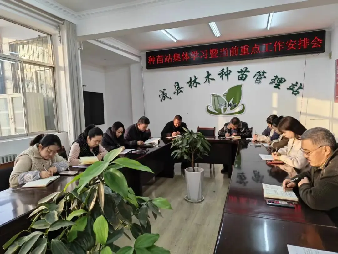 种苗站召开全体职工集中学习会,并对近期重点工作进行安排。