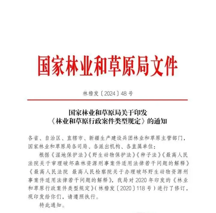 >(2024)国家林业和草原局关于印发《林业和草原行政案件类型规定》的通知