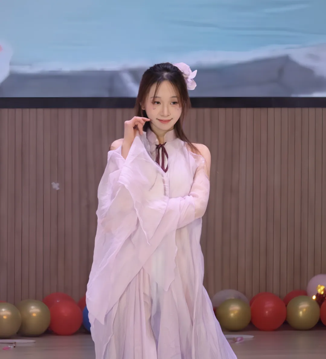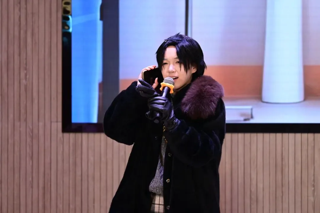 悠扬的歌声在报告厅里缓缓流淌,仿佛在诉说着一段情感。简单的旋律搭配真挚的演唱,让观众感受到音乐中蕴含的温暖力量。