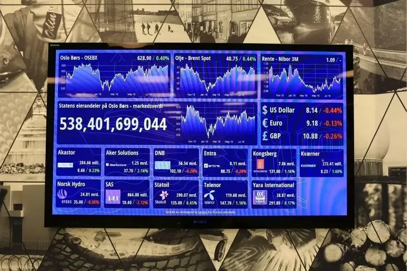 挪威渔业部大厅里的显示屏播放着与渔业相关的各项数据。