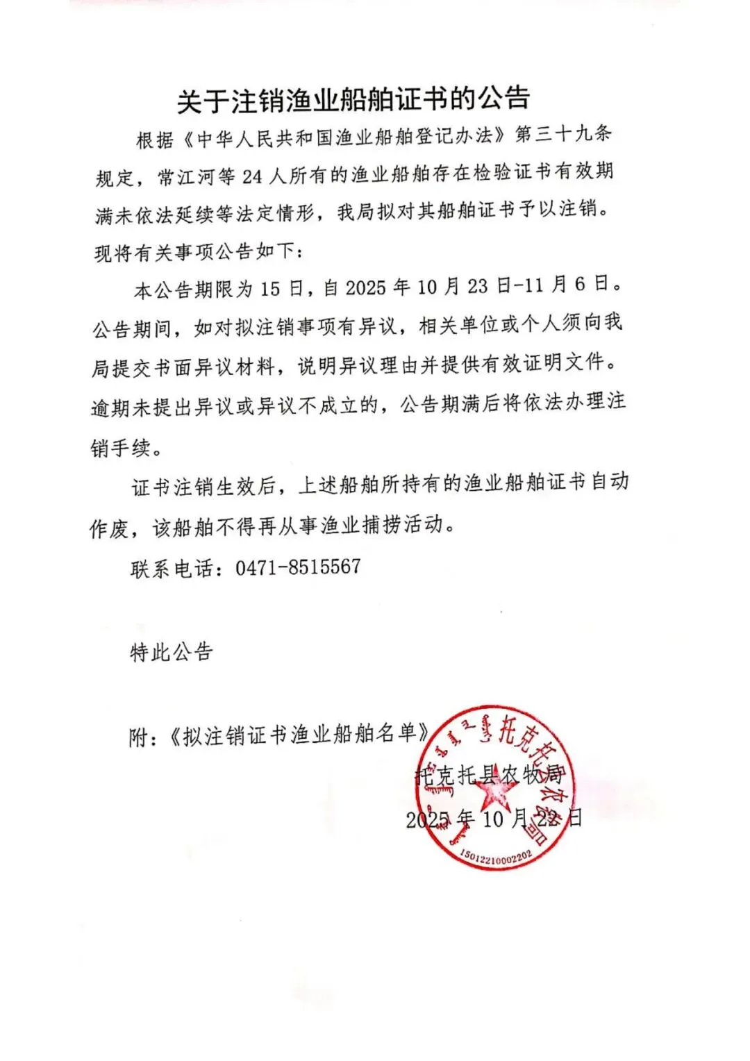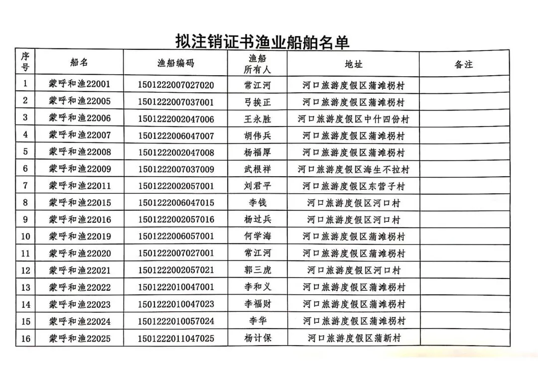 >关于注销渔业船舶证书的公告