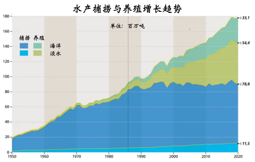 图1:全球渔业和水产养殖趋势(1950-2020年)数据来源:联合国粮食及农业组织