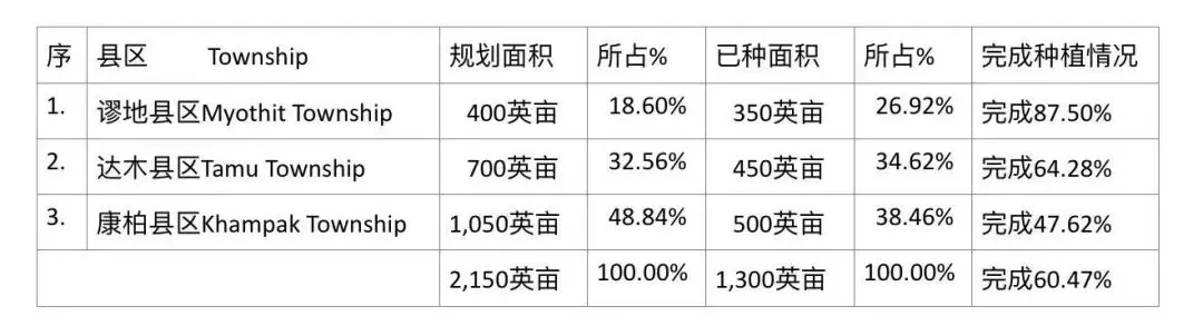 专区内的3个县区中,冬花生规划种植面积最多的是康柏县区,该县区规划的花生种植面积占全专区的近一半的比例。按:达木专区是实皆省内毗邻印度国家的一个边境地区,虽然是边境地区,但农业种工作也有一定基础,在2024—25财政年度冬作物种植季节期间也曾种植冬花生3,243英亩(见《缅华网》8月11日“缅甸新闻”栏目中的有关报导 ),冬花生每英亩产量达到62.70缅箩,接近农业局规定的一英亩70缅箩的指标产量,这应该在最大程度上满足当地民众们对食用油的需求了。