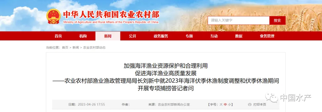 ——农业农村部渔业渔政管理局局长刘新中就2023年海洋伏季休渔制度调整和伏季休渔期间开展专项捕捞答记者问