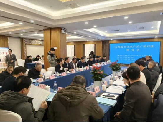 12月30日,山西省名优水产品产销对接座谈会议在山西大酒店二楼多功能厅举办。甲鱼、三文鱼、对虾、黄河鲤、罗非鱼等,随着山西水产养殖公司的介绍,这些山西本土的水产品展现在饭店餐饮企业老总面前。15家水产养殖企业各有特色,引起各参会饭店餐饮企业的兴趣。本次活动由山西省渔业协会和山西省饭店业商会举办,得到山西省农业农村厅农垦与渔业渔政管理局大力支持。来自水产养殖企业和饭店餐饮企业共60余人参会。这次活动,搭建了水产企业和饭店餐饮企业沟通合作的通道,打通了养殖企业到餐桌的壁垒。山西省农业农村厅农垦与渔业渔政管理局局长陈栋、二级调研员蓝天慧出席了活动。