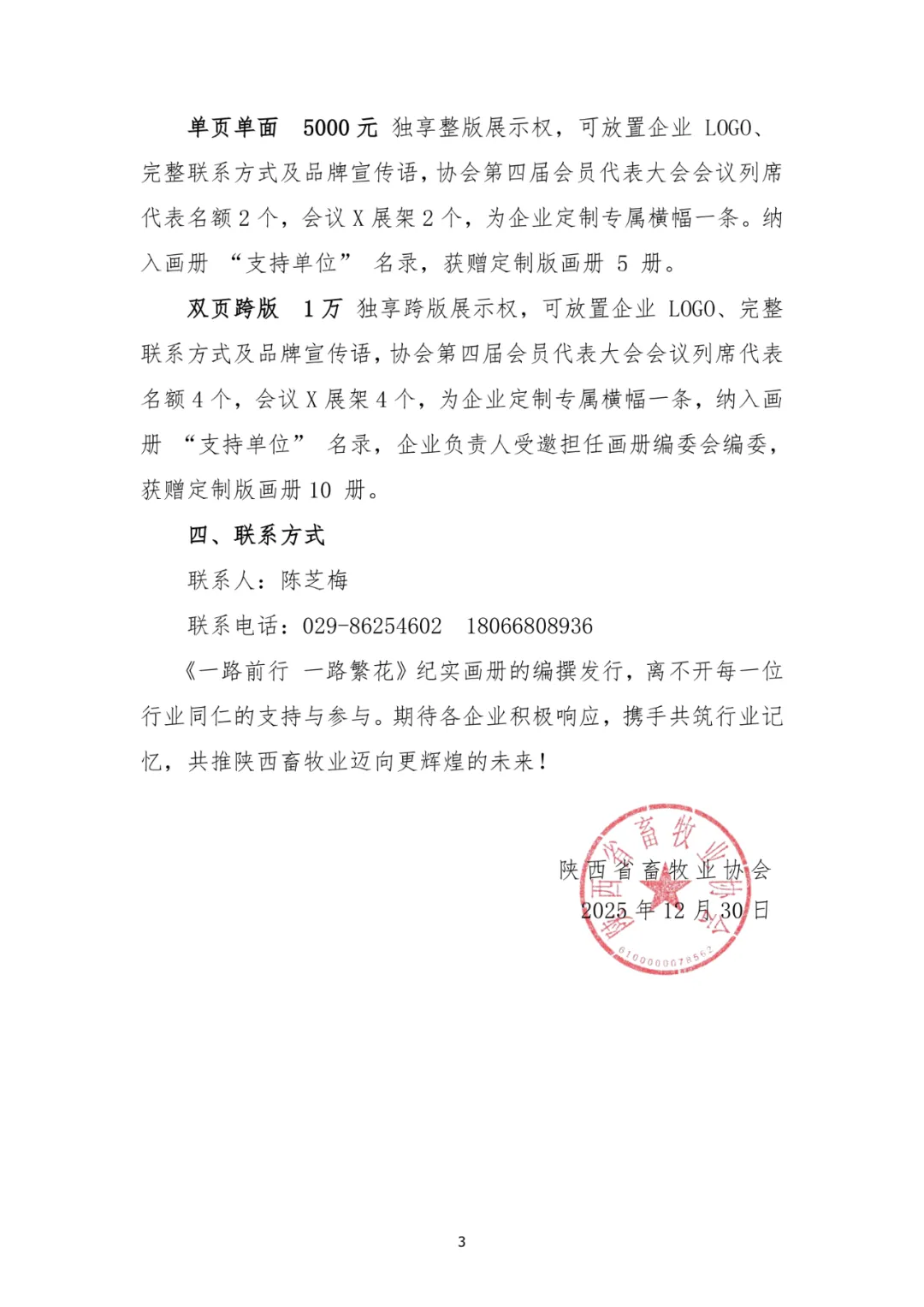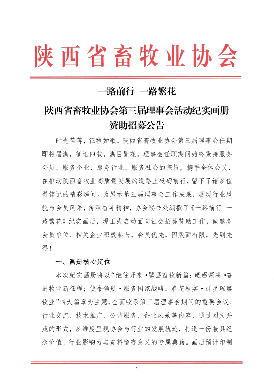 【招募公告】陕西省畜牧业协会第三届理事会活动纪实画册赞助招募公告