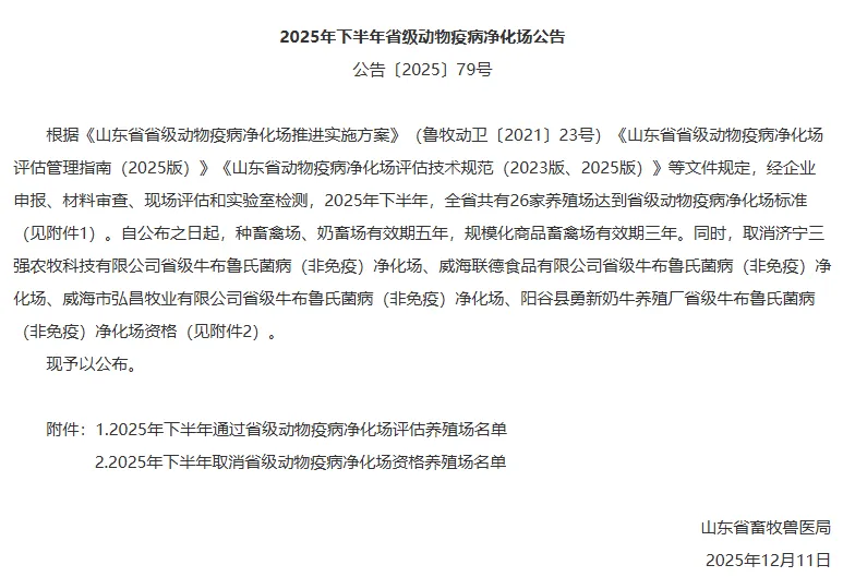 为表彰先进、树立标杆,进一步推进全市动物疫病净化工作,12月31日,昌邑市畜牧业发展中心举行2025年度省级动物疫病净化场授牌仪式。