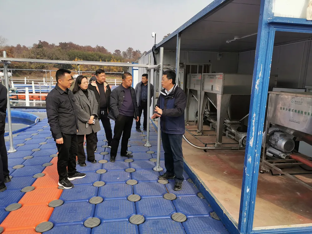 调研组一行实地详细了解了圈桶设备制造、运输及作业安装,精准投喂、废污收集及净化处理,吊水鱼循环推水、(液氧)增养等情况,并就养殖品种、养殖模式、建设规模、合作方式、供应链打造、品牌建设等方面与华中农业大学专家教授们进行了深入探讨与交流。