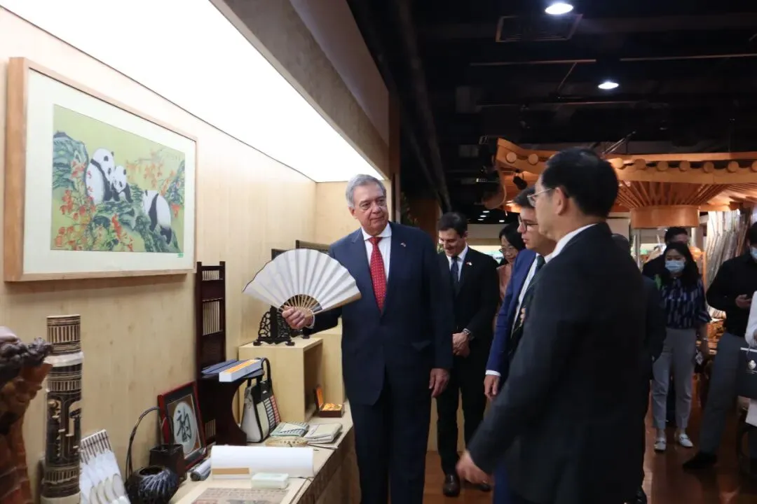 国际竹藤组织总干事穆秋姆、中国外交部拉丁美洲和加勒比司副司长王卫、中国国家林业和草原局国际合作司二级巡视员许强兴、中国国家林业和草原局国际合作交流中心常务副主任王春峰、中国国家林业和草原局国际竹藤中心副主任尹刚强、国际竹藤组织副总干事陆文明等参加工作午餐会,并陪同费尔南多·马托斯一行参观了竹藤展厅。