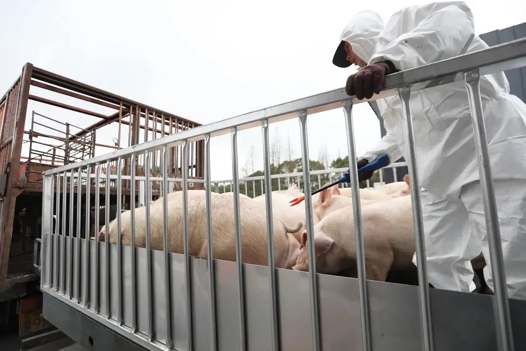 2月17日上午,澥浦祥平牧场300头生猪出栏,这是该牧场自去年7月份投产以来出栏的第一批生猪,标志着我区生猪出栏量有了新突破,我区畜牧业实现一季度“开门红”。