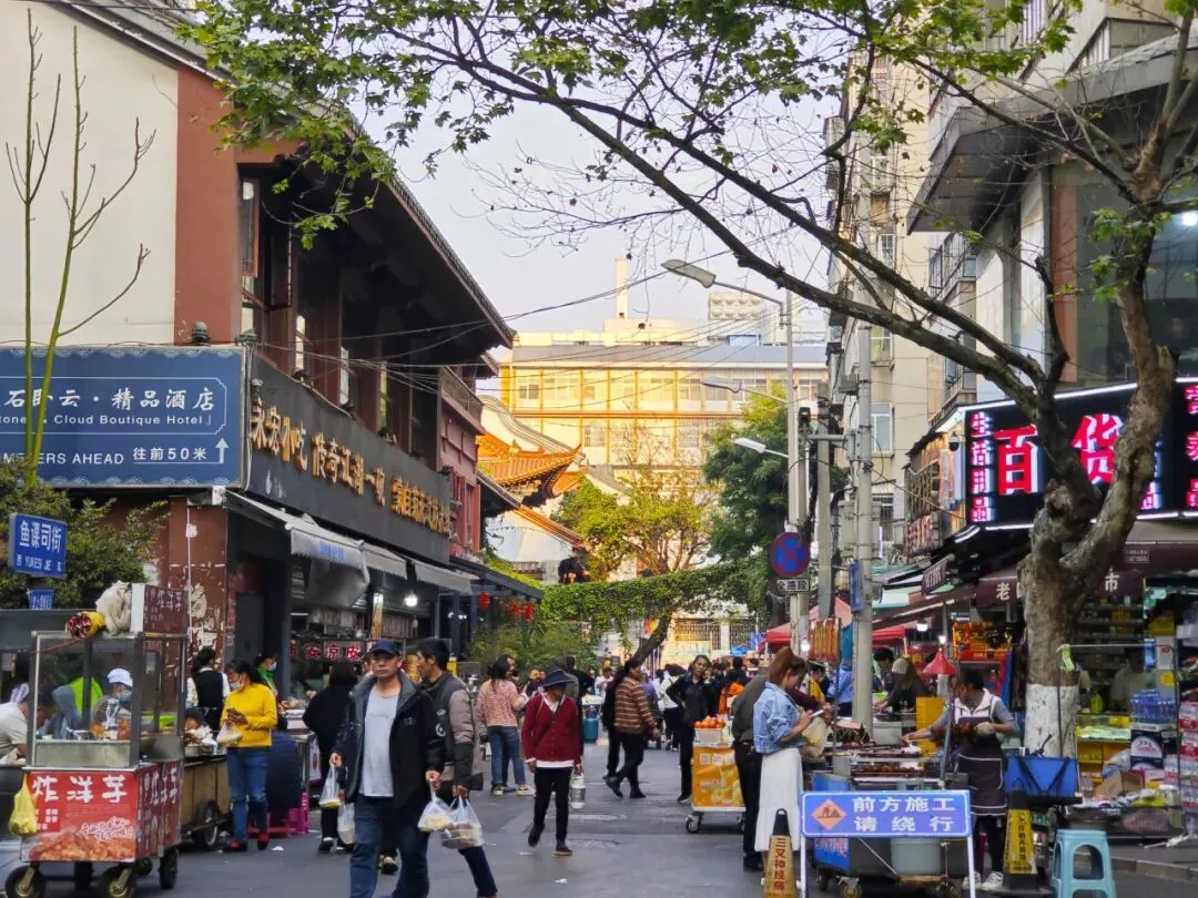 因着背靠金马碧鸡坊,鱼课司街是许多游客探访昆明的第一站。亮闪闪的银镯子,五颜六色的玉石珠宝,颇具少数民族风情的衣服鞋包,是游客对这里的第一印象。