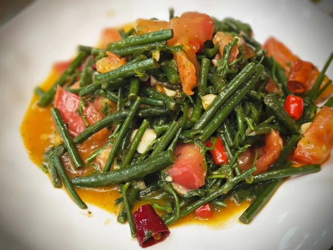 春天的水蕨菜也是必不可少的美味鲜绿。以酸甜可口的番茄炒之,脆爽动人,如临溪水之畔,无端端便心情明媚。