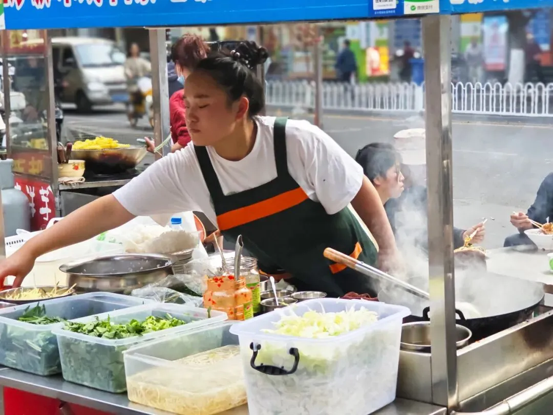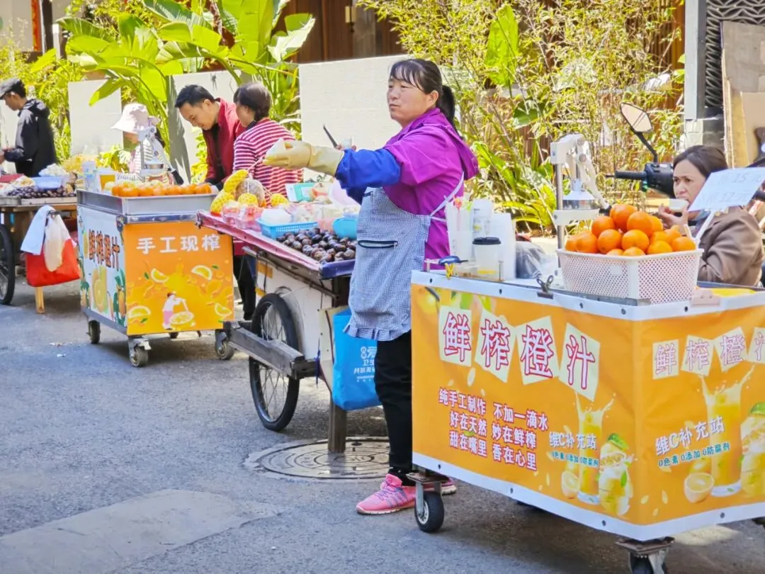 卖炒饭的,炸洋芋的,榨橙汁的,烤鸡翅的,立刻点燃起鱼课司街的烟火气。