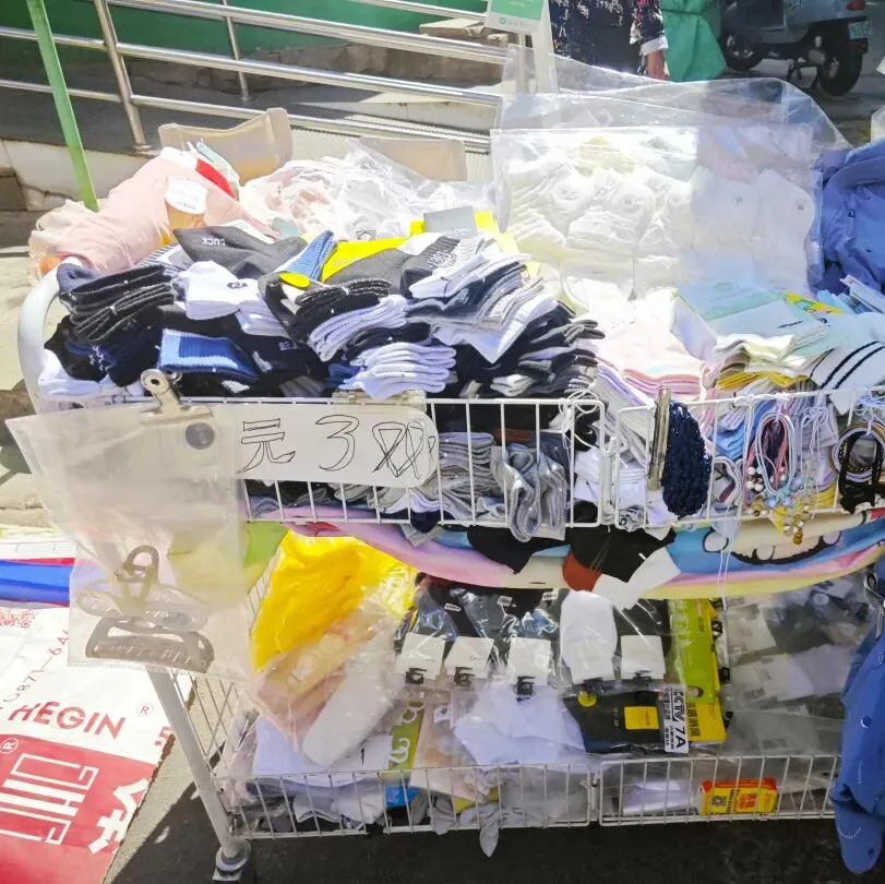 卖拖鞋袜子的,卖毛巾口罩的,甚至是卖抽纸卫生纸的,都会来这附近摆摊。匆忙奔赴昆华的人,已被病症骇得慌了手脚,哪顾得上细枝末节,价格便宜的路边摊便为人们提供了某些方便。