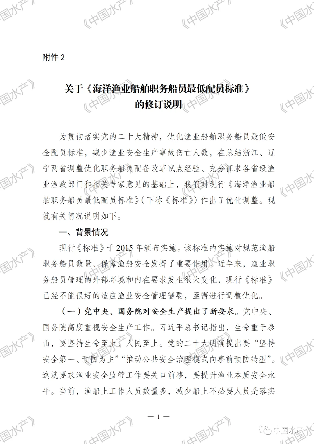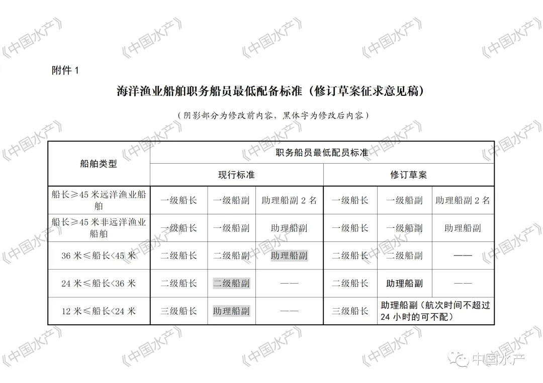 1. 海洋渔业船舶职务船员最低配备标准(修订草案征求意见稿)