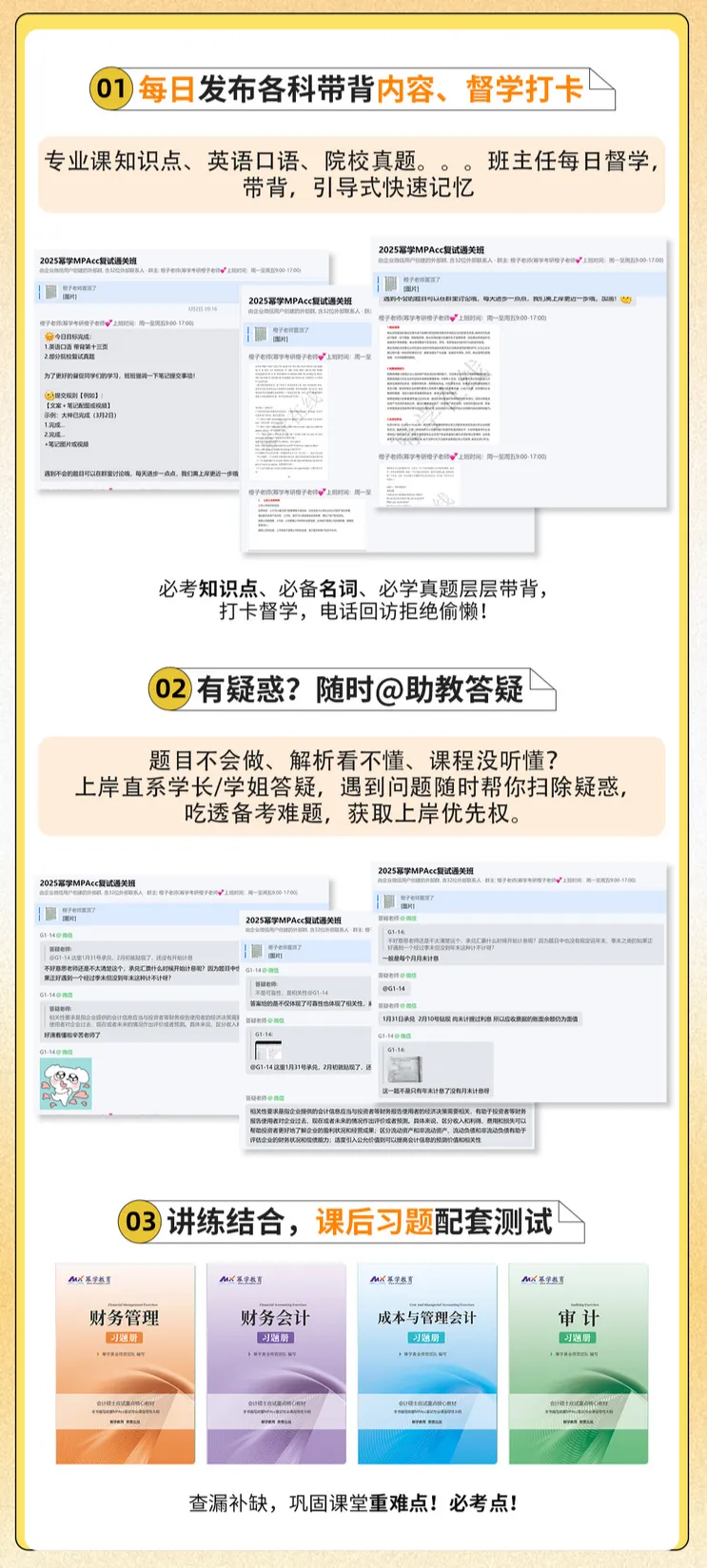每班仅限50人,打造精细化学习社群。配备专业助教老师全程驻群答疑,及时解决大家在备考中遇到的各类问题,营造互动式、陪伴式学习氛围。