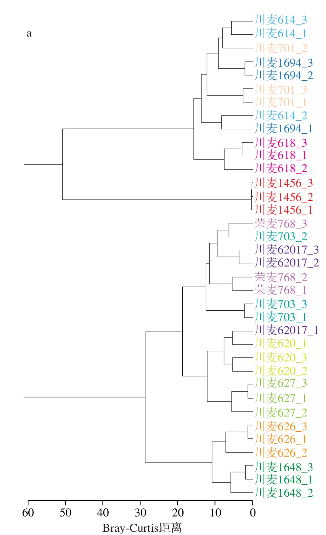 四川省农业科学院作物研究所(四川省种质资源中心)的罗江陶、蒲宗君*和四川省农业科学院农产品加工研究所(四川省农业科学院食物与营养健康研究所)的赵驰等人系统选取12 个具有典型品质差异的小麦品种,通过整合传统制曲评价体系与现代组学技术,采用扩增子测序技术解析大曲微生物群落结构,采用气相色谱-质谱(GCMS)表征不同来源大曲的代谢物谱特征,结合小麦理化指标(蛋白质组分、淀粉特性、粉碎特性等)与大曲感官质量,通过多组学关联分析揭示“小麦-微生物-代谢物”的相互关系,明晰制曲专用小麦的关键品质指标体系,以期为制曲专用小麦品种选育提供科学依据,同时为优化大曲发酵工艺提供理论支撑。