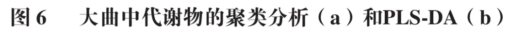 为进一步识别能够区分不同小麦品种大曲的标志性代谢物,应用PLS-DA方法。PLS-DA模型的Q2为0.68,