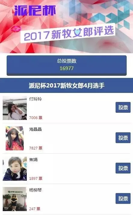 1、2017年1月起,每月推出最多4个审核通过的候选者,参与当月的公众投票评选,在当月的最后一个工作日按得票数决出1位当月月度新牧女郎。以此类推,最终由公众投票评选出10位月度新牧女郎。