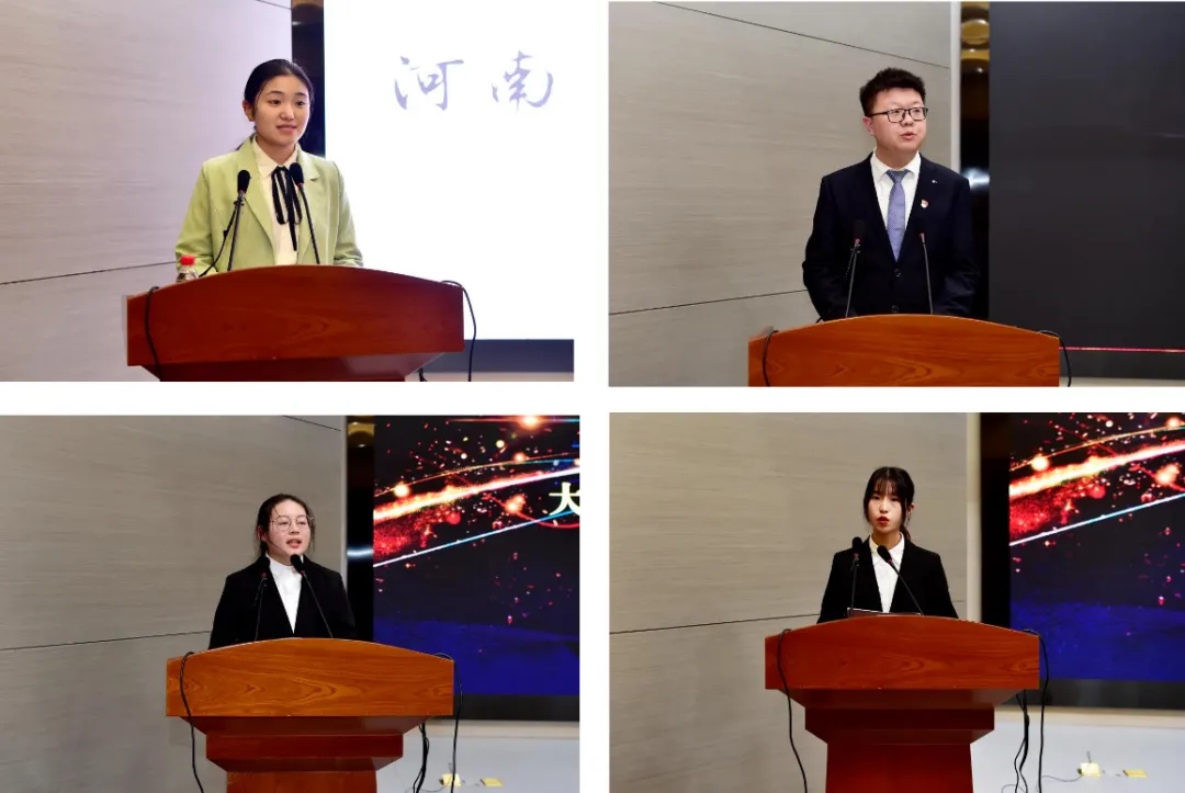 ▲理论中心海金霖、采编中心宋明洲、新媒体中心秦梦涵、春雨网络文化中心陈倩分别汇报工作