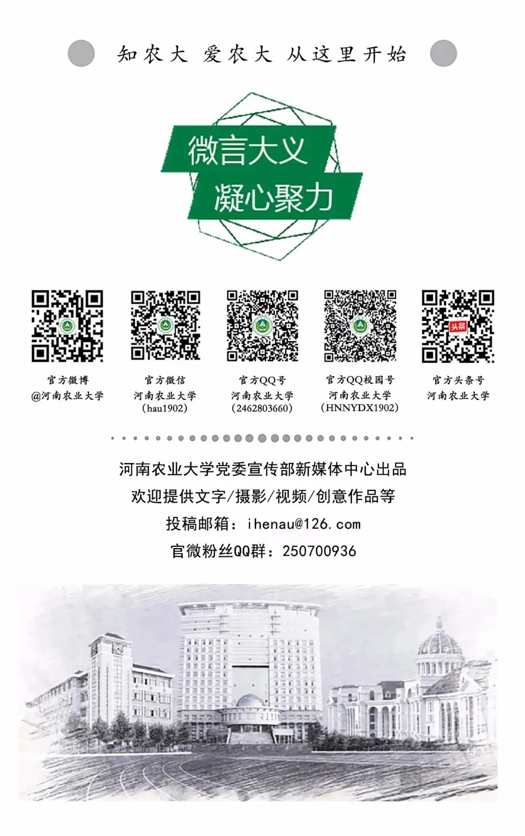 第二个我要说的关键字,是“干”。对,就是“撸起袖子加油干”的干!我觉得首先你要想清楚你是否喜欢你现在的工作,并且能从中有所收获。当你确定了这件事之后,剩下的就是对热爱的事情百分百的投入了。我犹记得初入部门的时候,发一条微博我都会字斟句酌好半天,第一次去老区开会被周老师夸奖“微信做的不错”的时候,我心里暗暗发誓要把工作做得更出色,得到更多老师的表扬!哈哈,但这不是重点哈,其实就是你的努力被别人看到了,当标有你名字的微信发出来,被数万个农大人看到,当你写的稿子发在校报上,官网上,那种成就感是很难以言喻的。