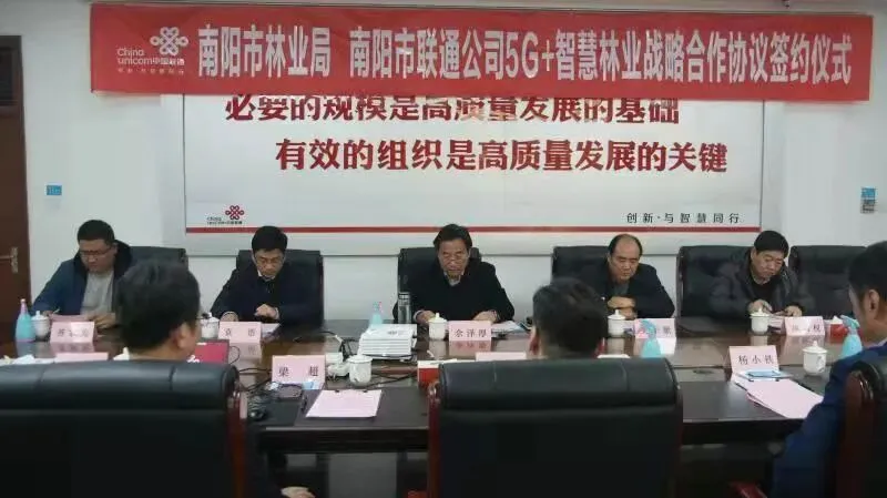 余泽厚强调,建设信息化林业,推进林业数字化转型升级是深入贯彻落实习近平生态文明思想、认真践行绿水青山就是金山银山理念、积极响应党中央、国务院关于加快数字化发展重要部署的具体行动,也是推进林业高质量发展的必然要求。南阳联通公司设备先进、技术实力雄厚、服务质量优良,我们将借助公司的各方面优势,围绕智慧林业信息化、基础通信服务等领域,在建设智慧林长制综合管理平台、森林防火视频监控与火情职能指挥调度、森林资源变化管理监测、野生动植物保护管理监测、有害生物管理监测、自然保护地管理监测和协同办公等方面进行深度合作。希望南阳联通公司充分发挥自身优势,为林业信息化建设提供有力的技术支撑和服务保障,市林业局也将认真按照双方签订的战略合作协议,以最大诚意、尽最大努力推动合作项项落实、件件落地,不断深化,共同发展,互利共赢。在双方的共同努力下、精心建设下、倾力打造下,双方合作必将百尺竿头、更进一步,取得更加丰硕的成果;南阳的生态建设一定会更加美好,市第七次党代会确定的“绿色崛起、美丽富民”奋斗目标一定会早日实现!