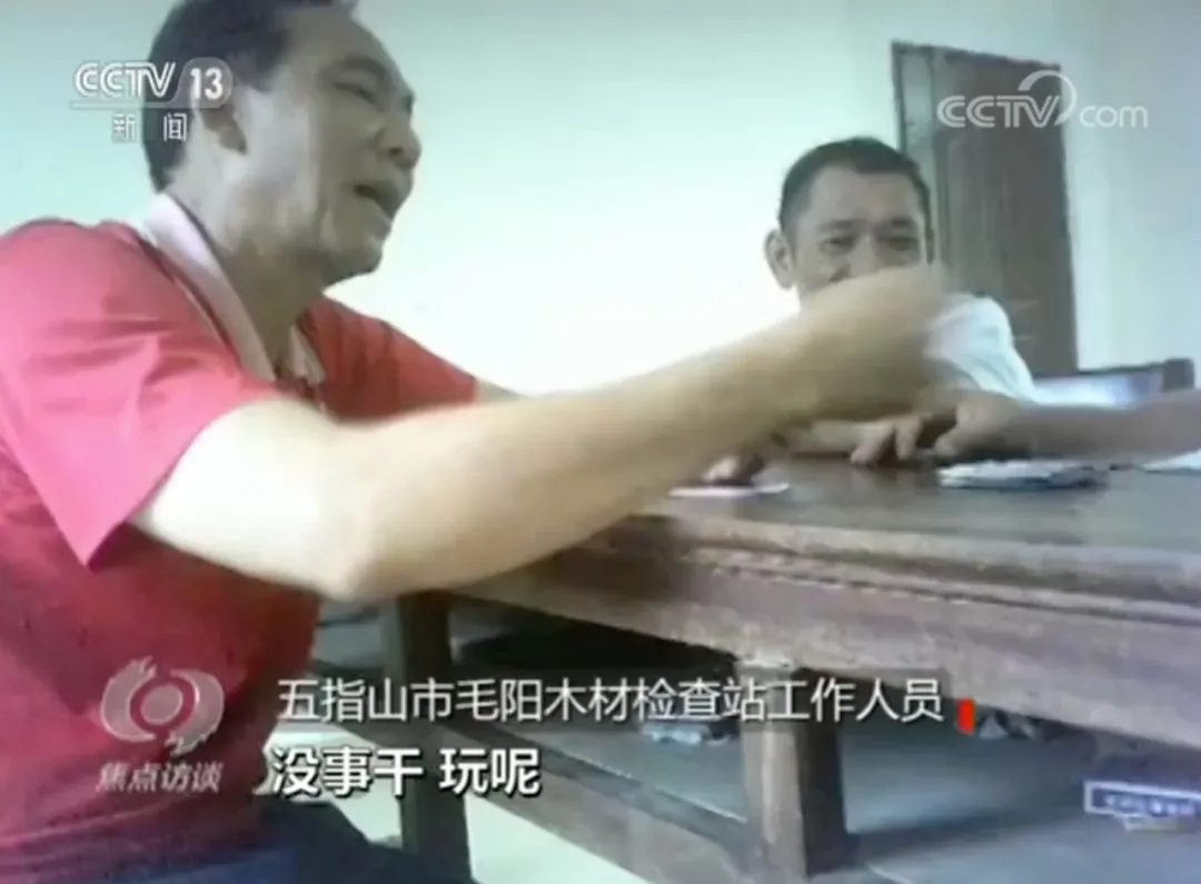 据了解,经销商运输海南黄花梨的车辆一般都要通过五指山市毛阳镇木材检查站,根据《海南省木材管理办法》,经省人民政府批准或者省人民政府授权省林业主管部门审批设立的木材检查站,负责对过往运载工具运输木材的情况进行检查,查验木材运输证件,制止违法运输木材行为。这个木材检查站的工作人员有没有尽到管理责任呢?记者来到毛阳木材检查站,上班时间有的人躺在椅子上睡大觉,有的人正在研究买彩票,更让记者吃惊的是,工作人员居然在办公室打牌赌博。