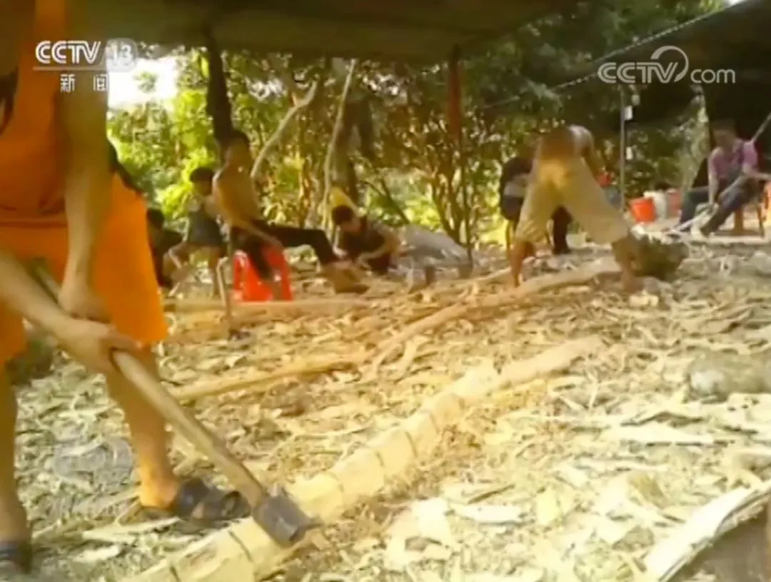 在另一个收购商阿宝的收购点,一棵几百斤重的黄花梨大树引起了记者的注意。阿宝告诉记者,这棵黄花梨也是野生的,在深山老林里的山林承包户那里找到的,为了搬回来,四个人抬着走了好几里山路。