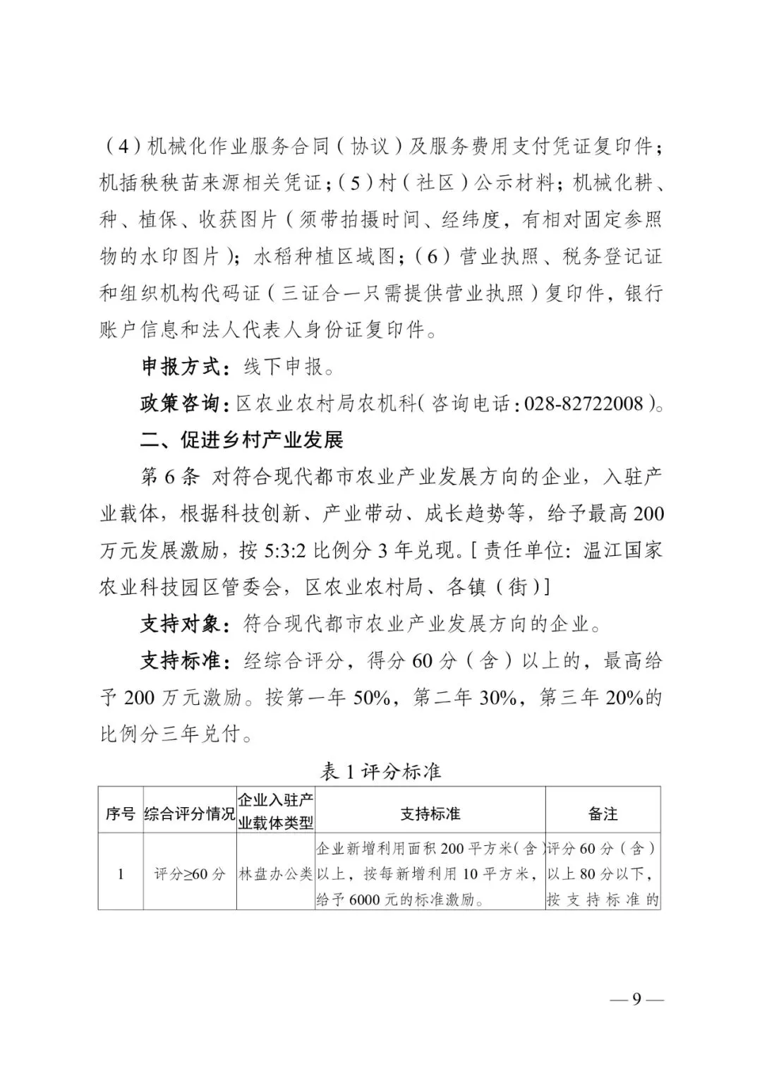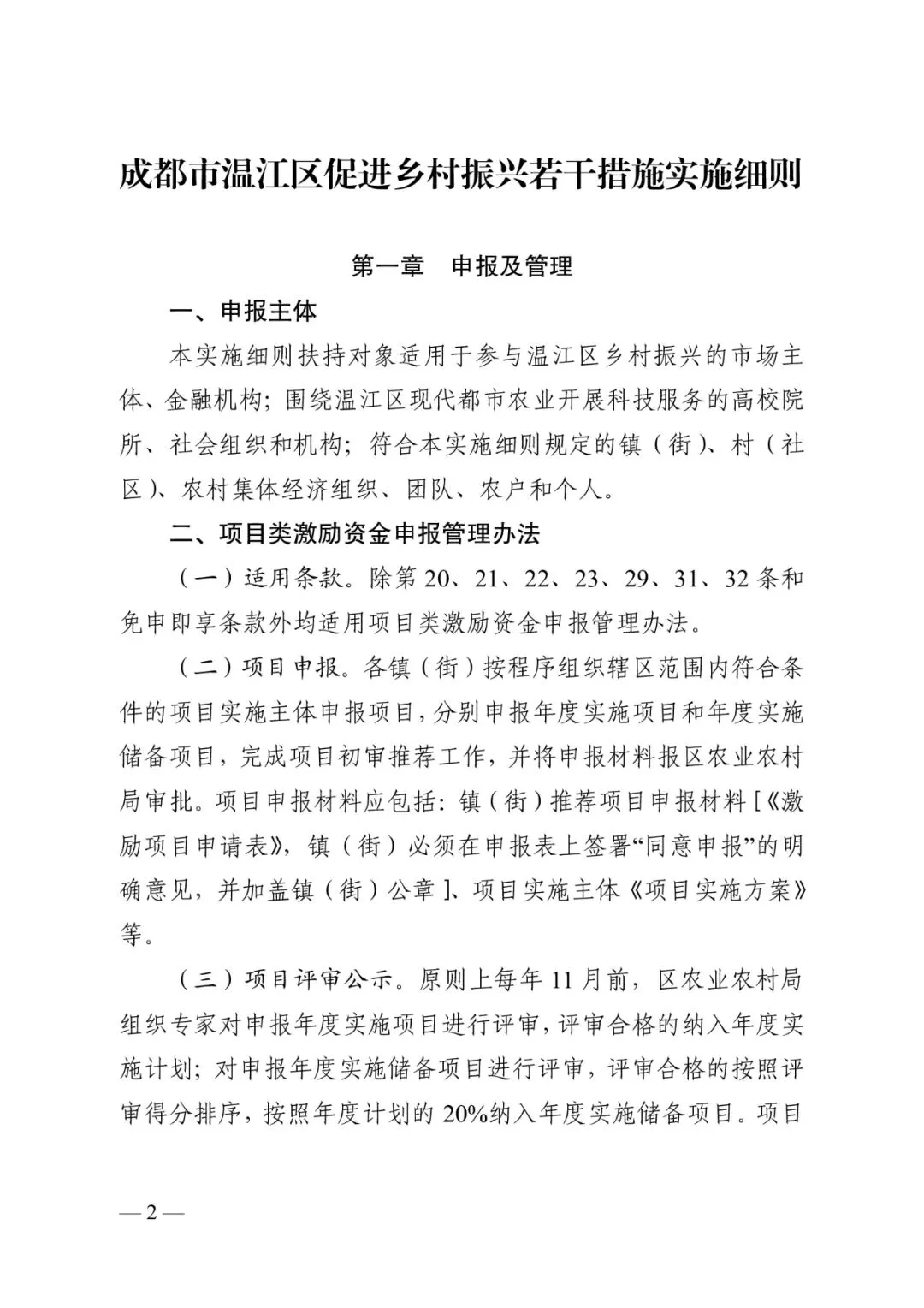>成都市温江区农业农村局关于印发《成都市温江区促进乡村振兴若干措施实施细则》的通知