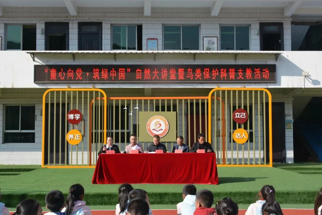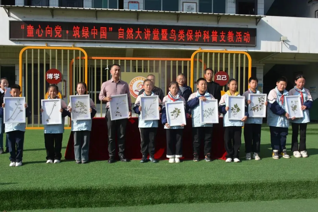 秋光正好,万物含章。为深入贯彻落实延安市委、市政府第十期教育对口支援工作的通知及《“童心向党 筑绿中国”——青少年生态文明教育主题宣传实践活动方案》精神,10月28日下午,延安市桥山国有林管理局副局长高战雄一行几人带着精心准备的捐赠物资与专业知识,走进双龙校区,为师生们带来了一场别开生面的捐赠仪式与鸟类科普盛宴。
