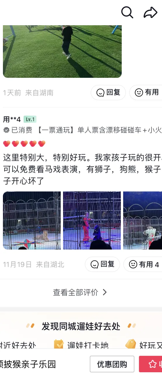 湖北省襄阳市一游乐园在2023年11月进行过野生动物表演,包括非洲狮、黑熊等。因为该游乐园的抖音账号进行过直播,还有网友消费后的带图评论,表明该地进行过野生动物表演。同时,也有志愿者现场拍摄过野生动物表演的视频和图片。
