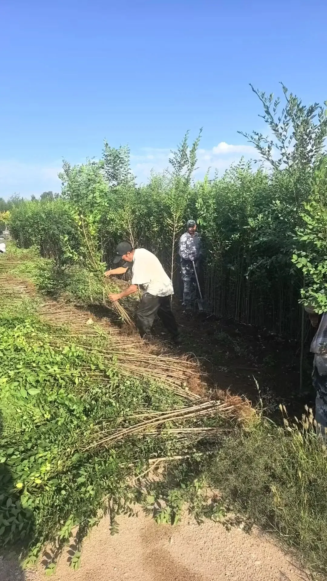 出圃现场,工人们分工明确、配合默契。起苗工人手持专业工具,小心插入土中,轻轻晃动,完整起出苗木,避免根系损伤;搬运工人迅速苗木搬运至装车区,整齐码放;装车工人凭借经验,合理安排苗木位置,用绳索、篷布固定,防止运输途中晃动、碰撞,保障苗木安全抵达目的地。整个出圃流程有条不紊,现场秩序井然。