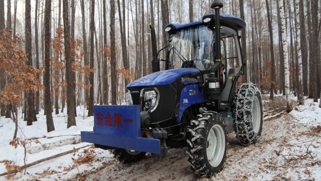 与此同时,其他队员也各司其职,有条不紊地忙碌着,有的负责将伐倒的树木进行造材、打枝,有的将清理干净的木材归集成堆,等待运输,还有的将木材捆绑在拖拉机后面,规划好集材线路,确保安全高效地运输至楞场。在集材工序中,驾驶员们凭借精湛的技艺,专注地控制着方向盘,驾驶着拖拉机在厚厚的积雪覆盖的崎岖山路上艰难前行,尽量避开坑洼和断树障碍,每一趟运输都凝聚着他们的细心与汗水。