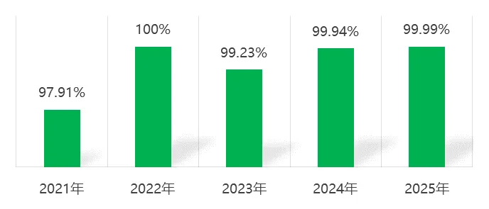 深入彻落实江苏省总林长令,巩固“绿色镇江、生态镇江”建设成果,维护森林资源安全,依法防治、突出重点,落实针对性预防措施,持续推进松材线虫病防治、美国白蛾监测防控、舟蛾类杨树食叶害虫防控、森林白蚁防控等治理工作,有效遏制主要林业有害生物扩散蔓延势头。"十四五"期间,林业有害生物成灾率持续降低,2025年降低至1.77,无公害防治率长期稳定在95%以上,有效保障了森林生态系统安全和生物多样性稳定。