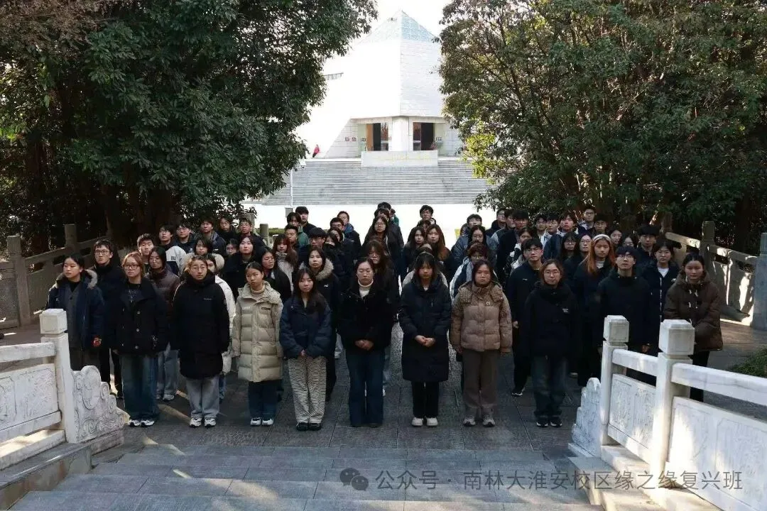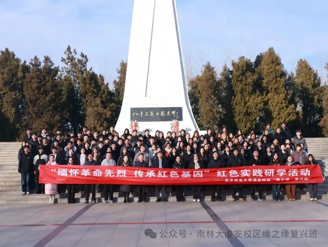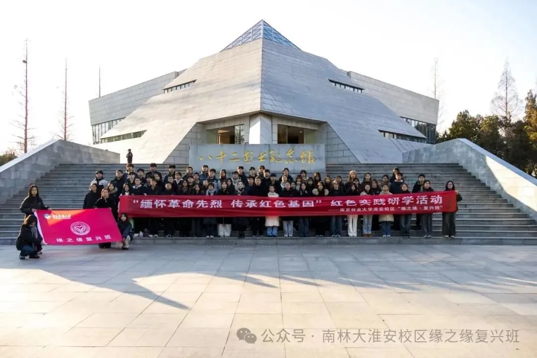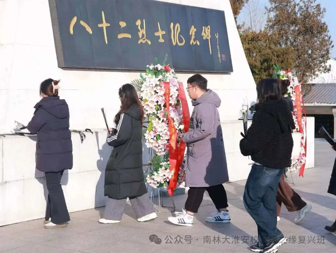 为赓续刘老庄连的革命精神,进一步筑牢“缘之缘·复兴班”的爱国主义精神根基,12月26日,南京林业大学淮安校区党委常务副书记、管委会常务副主任黄学明,校区党委副书记、学生工作部部长褚必海率队,组织班主任老师及“缘之缘·复兴班”同学们走进刘老庄连纪念园,开展一场意义深远的红色研学活动。通过沉浸式参访、情景化讲解与互动体验,大家深切追忆八十二烈士的英勇壮举,完成了一场触及灵魂的红色精神洗礼。