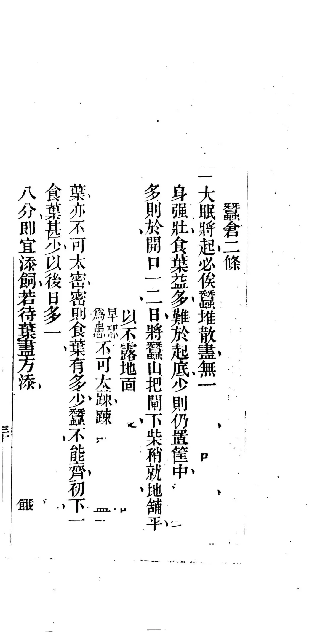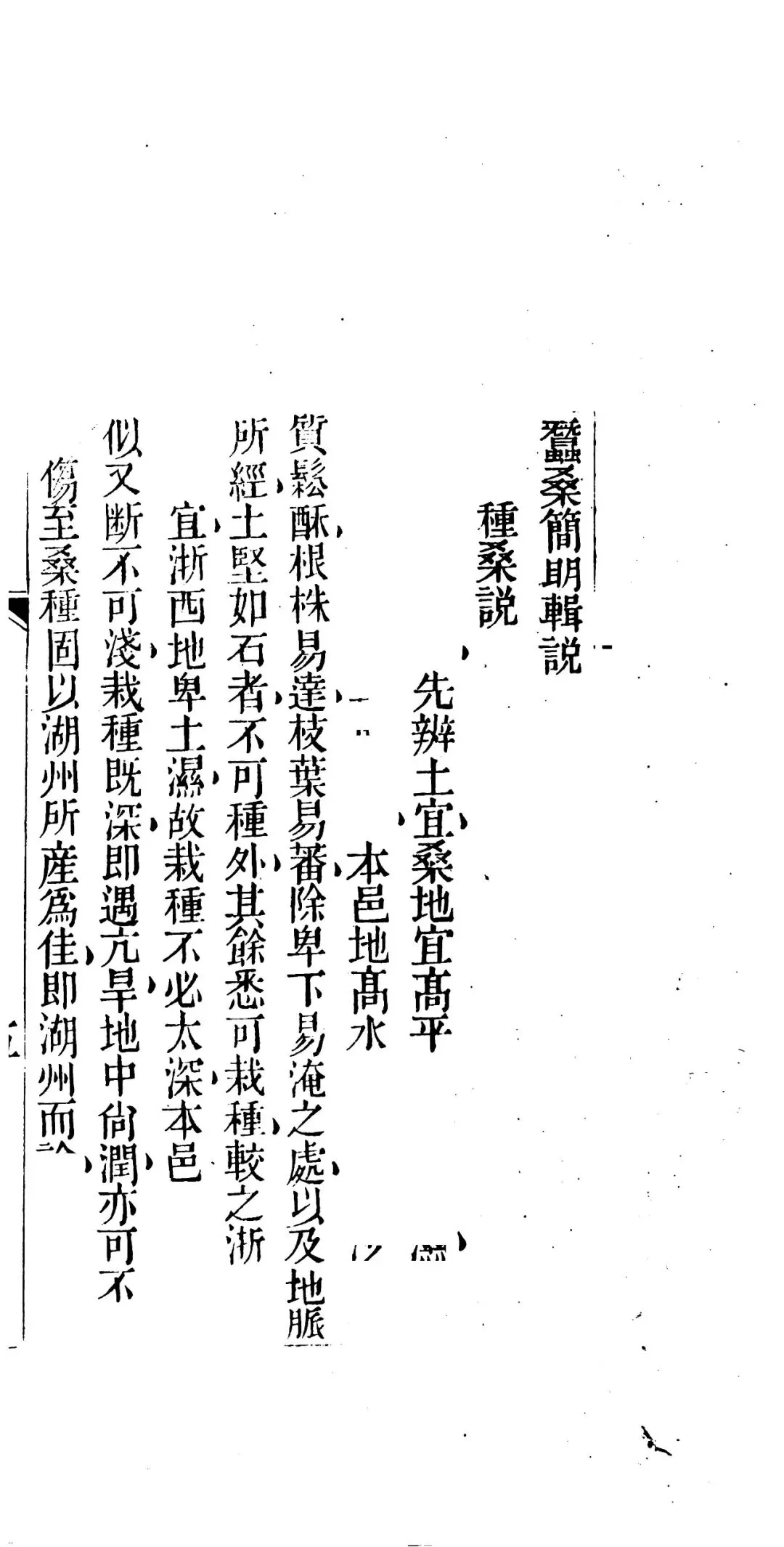 内容包括:种桑说、种桑子法说、修剪法、治桑田、辨桑种、取桑叶、养蚕说、哺蚕、采叶书中详细介绍了种桑养蚕的各种方法和注意事项。如种桑方面,强调桑地宜高平、忌低湿,桑种以湖州所产为佳,其中紫皮桑最优,并介绍了种桑子、栽桑秧、嫁接、修剪等具体操作方法;养蚕方面,指出蚕性喜暖恶寒,对蚕的饲养过程,从留种、哺蚕、采叶、眠起处理到上山、落茧、缫丝等环节都有详细说明。
