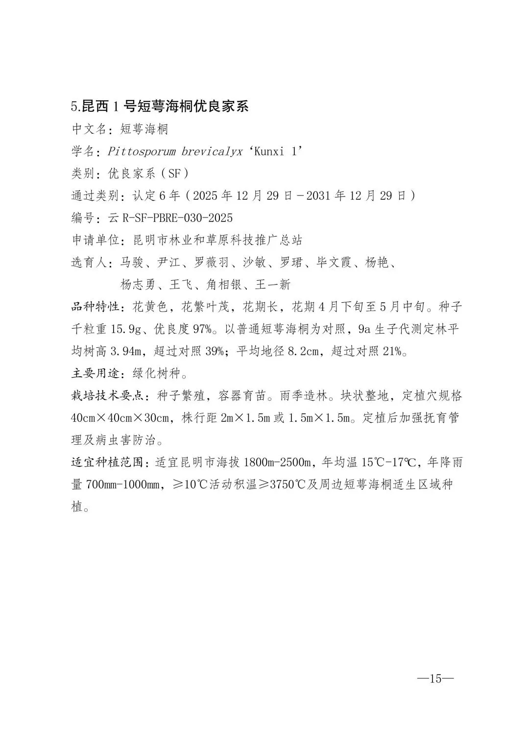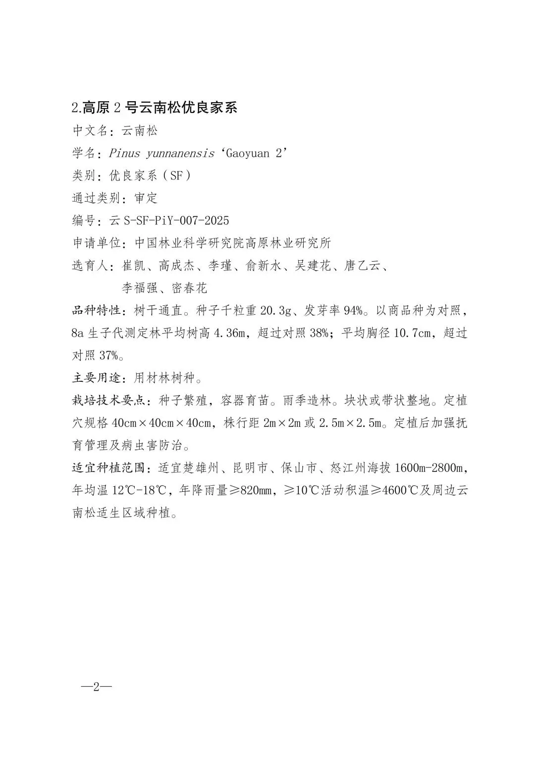 云南省林业和草原局关于公布2025年度云南省林木良种名录(第二批)的通知