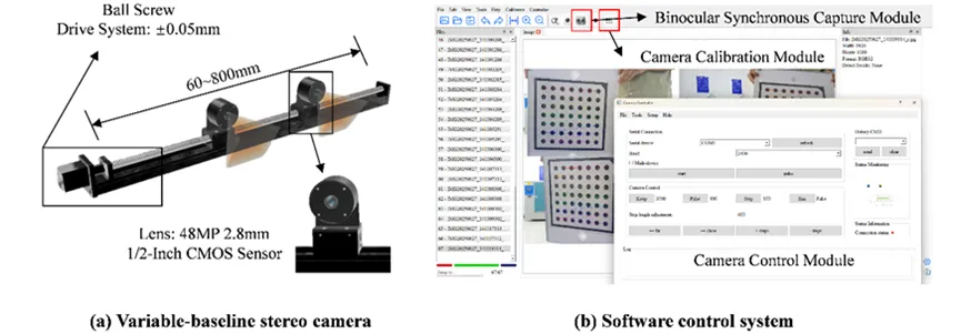 图4 可变基线双目立体采集平台(硬件结构与软件控制系统)