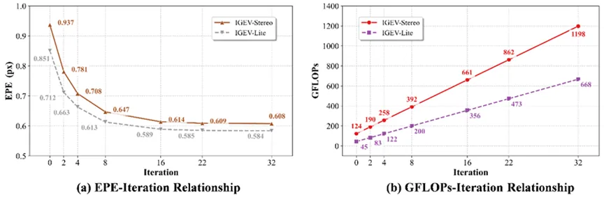 图9 迭代次数消融分析:端点误差与计算量随迭代次数变化关系
