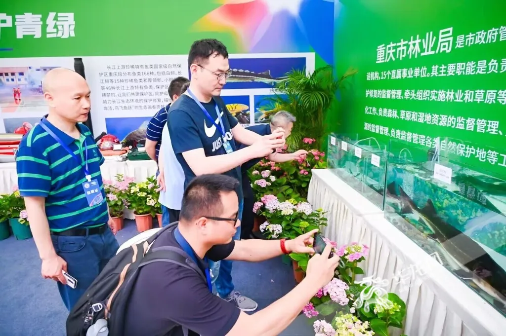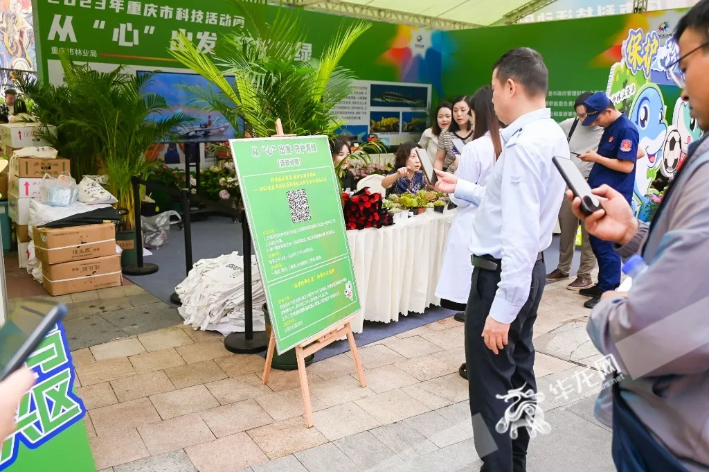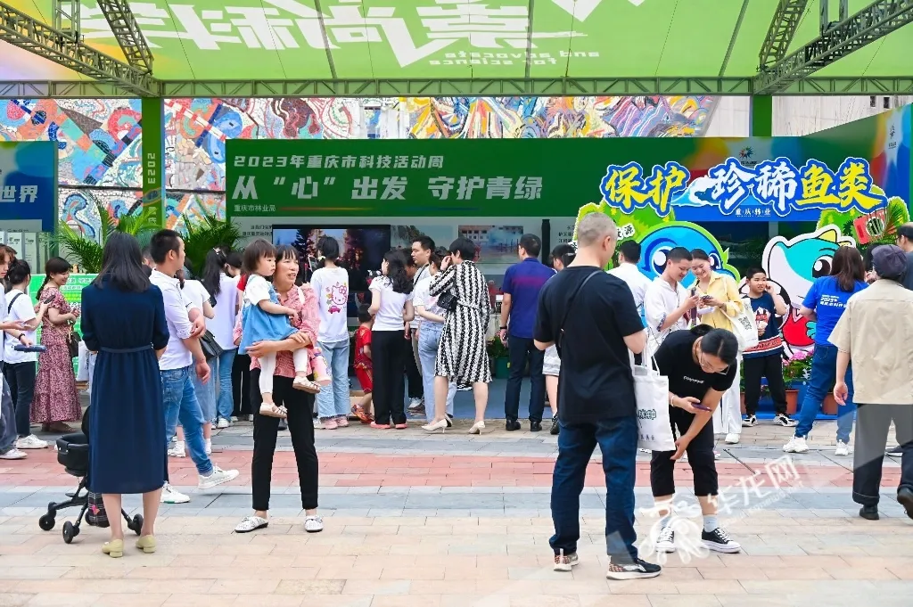 ▲重庆市林业局展区,大量市民前来参加森林防火科普知识问答和保护珍稀鱼类打卡活动。图源:华龙网-新重庆客户端