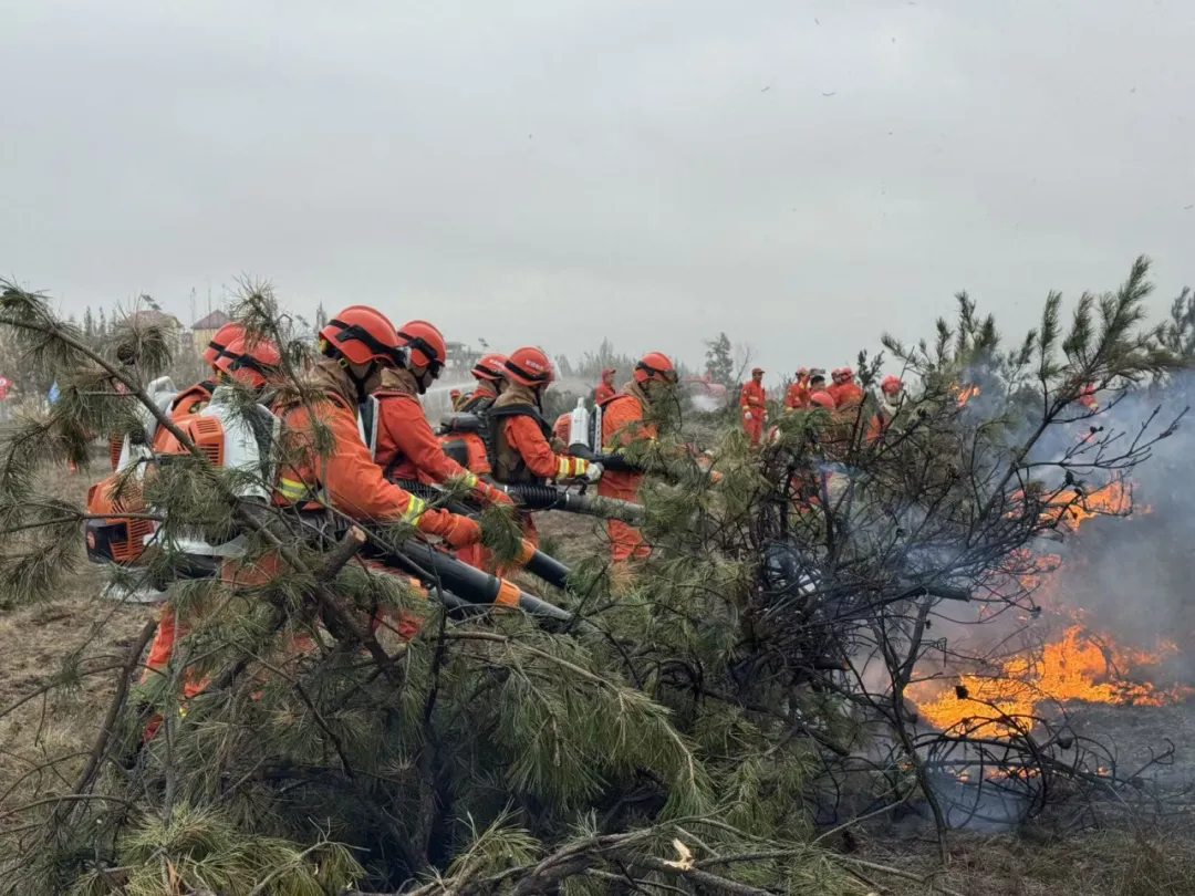 次日进行的森林草原防灭火综合演练,模拟真实火场环境,设置了火场紧急避险与逃生、风力灭火机协同压制火头、消防水车远程供水灭火等关键科目。防火队员们反应迅速、处置果断,与其他队伍紧密配合,成功控制“火情”,圆满完成各项任务。