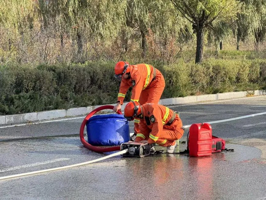 活动首日,技能比武环节紧张激烈。防火队员们在三公里负重跑中挑战体能极限,在风力灭火机操控中展现精准娴熟的技能,在水泵水带铺设与撤收中体现高效协同,在手持GPS应用考核中检验科技装备使用能力。每一个项目都是对队员们身体素质、技能水平和团队协作的全面考核。