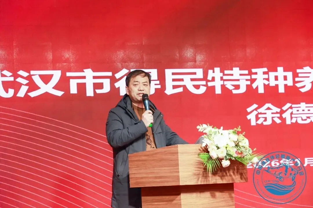 武汉市得民特种养殖有限公司董事长徐德忠在致辞中表示,在各级领导关心下,得民公司取得了长足的进步并形成了自身的特色:一是注重鳜鱼亲本的品质和提纯扶壮,现储备了“六大品系”的鳜鱼亲本,其品质好,繁殖力强;二是自行研究开发循环水利用设备和技术路线,水质控制优良,节能减排效果十分明显;三是进一步强化基础设施建设,2025年新增鳜鱼苗种繁育工厂化车间2200平米;四是工厂化车间饲料鳜鱼驯化走出新路,为鳜鱼养殖饲料化、产业化打下良好的基础。