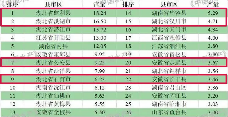 荆州监利市产量18.24万吨