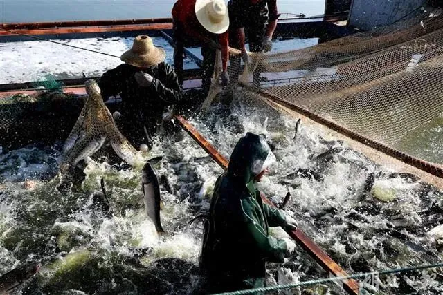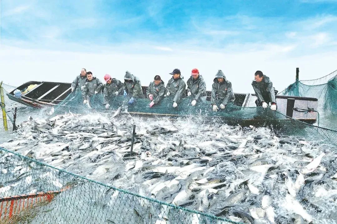 收网起鱼 图片来源:荆州日报